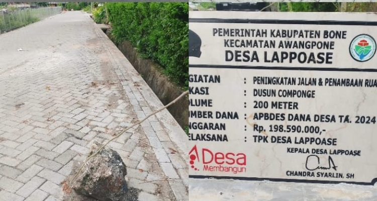AWANGPONE, BONE – Sebuah proyek pembangunan paving blok di Componge, Desa Lappo