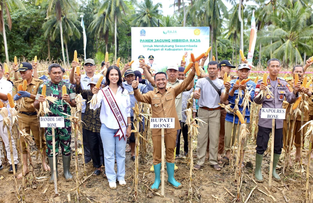 Dukung Swasembada Pangan, Bupati Bone Panen Perdana Jagung Hibrida Di Tellu Siattinge