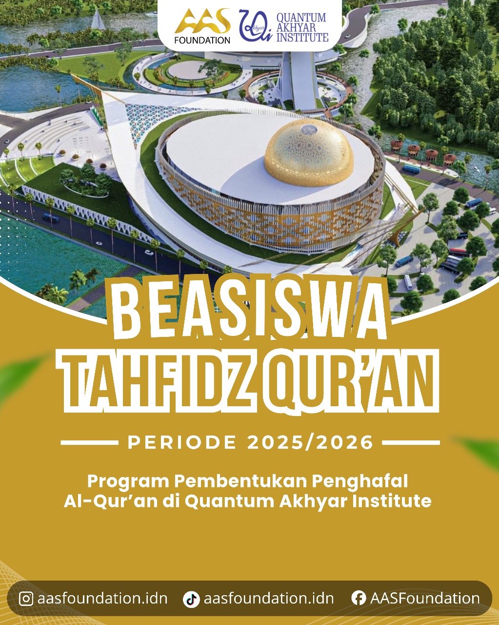 MAKASSAR,TRENDSULSEL–AAS Foundation bekerja sama dengan Quantum Akhyar Institute kembali membuka Program Beasiswa Tahfidz Qur’an Periode 2025/2026.