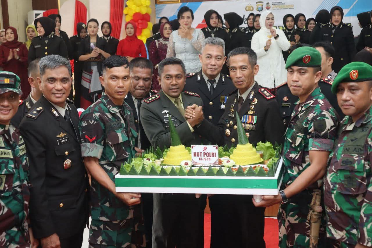 Puncak kejutan terjadi saat pasukan loreng dari Kodim 1407/Bone masuk ke ruangan dengan membawa tumpeng ulang tahun dan ucapan selamat Hari Bhayangkara. Dandim 1407/Bone secara langsung menyerahkan kue tersebut kepada Kapolres Bone, disambut tepuk tangan hangat dari seluruh tamu undangan.
