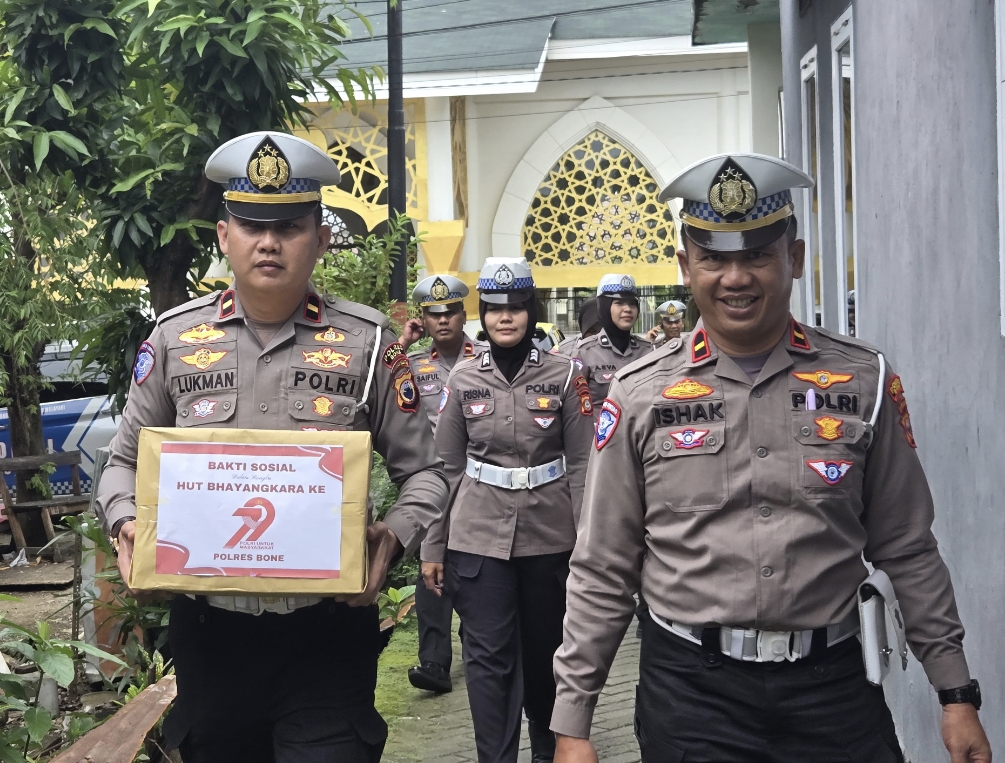 Jelang HUT Bhayangkara, Polantas Bone Berbagi Kebahagiaan