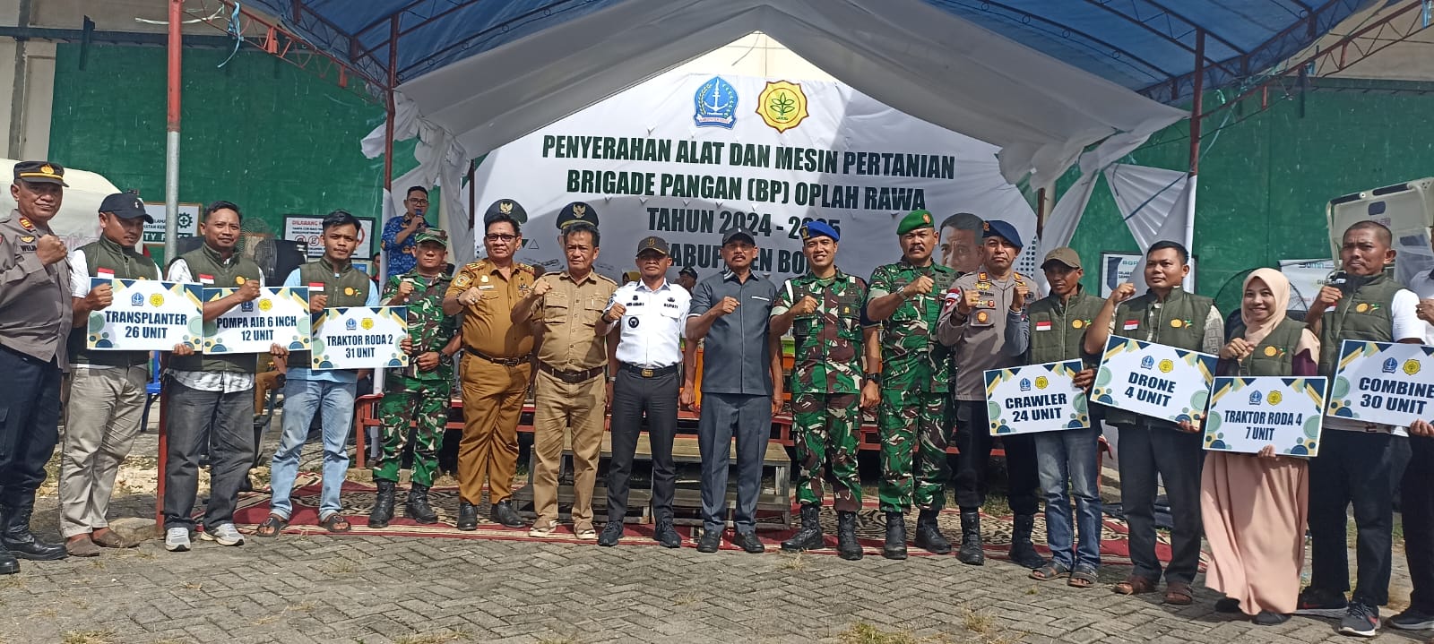 Alsintan diserahkan langsung oleh Bupati Bone H. Andi Asman Sulaiman, S.Sos., M.M., dan disaksikan Ketua Komisi II DPRD Bone Andi Muh. Idris Rahman, unsur Forkopimda, serta jajaran Tripika dari kecamatan lokasi Opla Rawa.