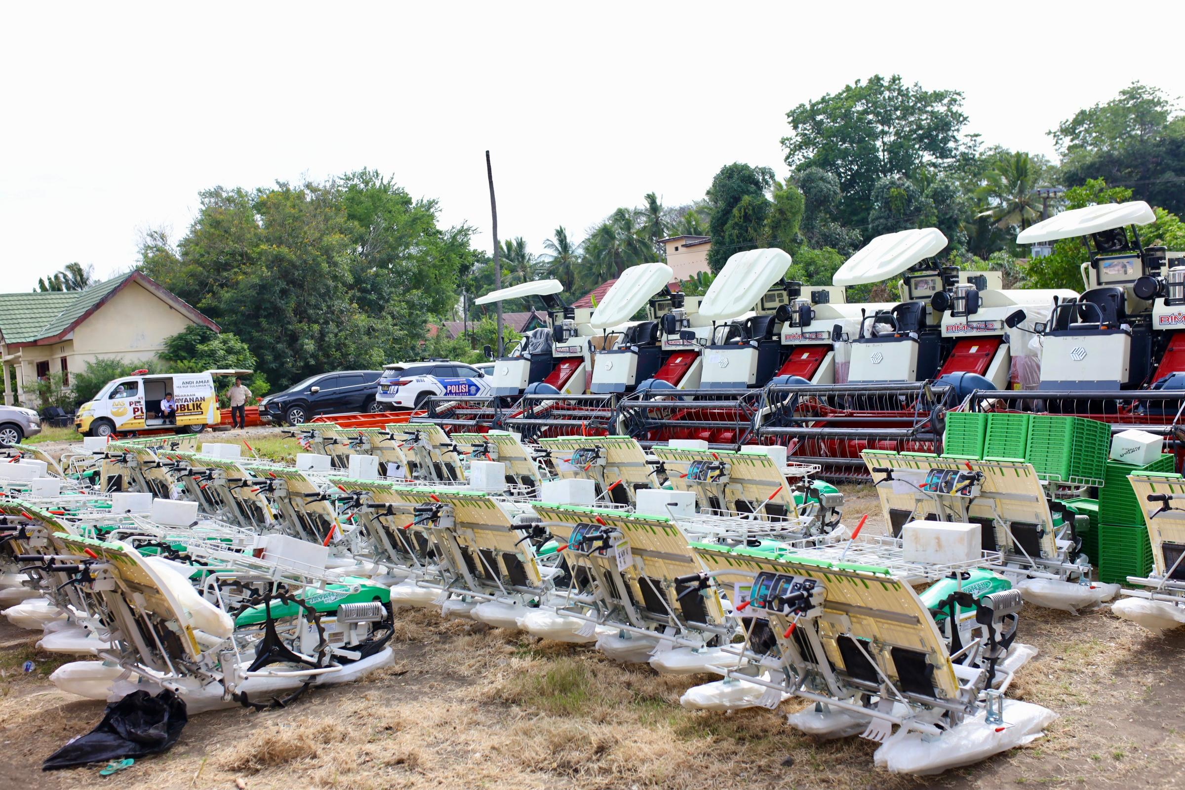 Bantuan alsintan yang diserahkan terdiri atas 30 unit combine harvester, 7 unit traktor roda empat, 4 unit drone pertanian, 31 unit traktor roda dua, 26 unit rice transplanter, 12 unit pompa air 6 inci, dan 24 unit crawler.