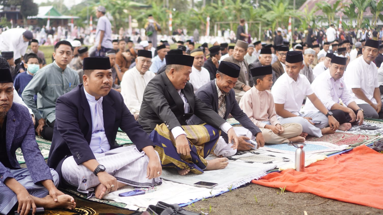 BONE,TRENDSULSEL–Bupati Bone H. Andi Asman Sulaiman, Didampingi Ketua TP PKK Bone Hj. Maryam A. Asman Melaksanakan Salat Idul Adha Di Lapangan Lappajupeng, Desa Bengo, Kecamatan Bengo, Jum’at 6 Juni 2025.