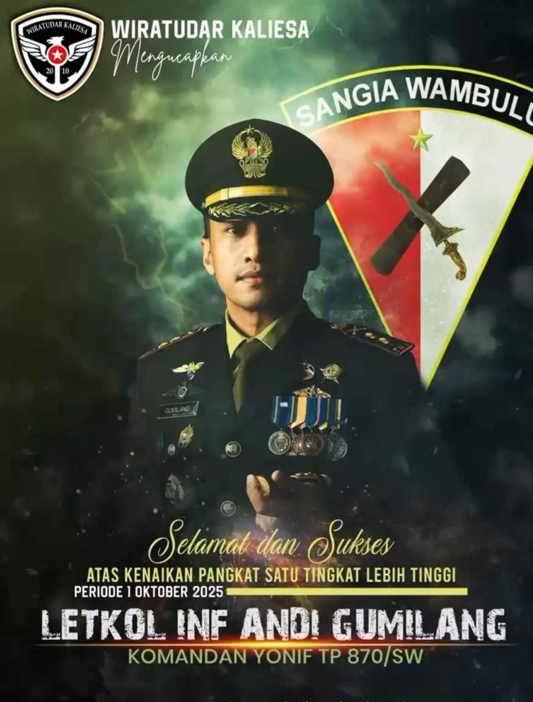 Dedikasi dan Prestasi yang Mengharumkan Nama Bangsa Letkol Inf. Andi Gumilang Luwello dikenal sebagai sosok yang disiplin dan berintegritas dalam menjalankan tugasnya.