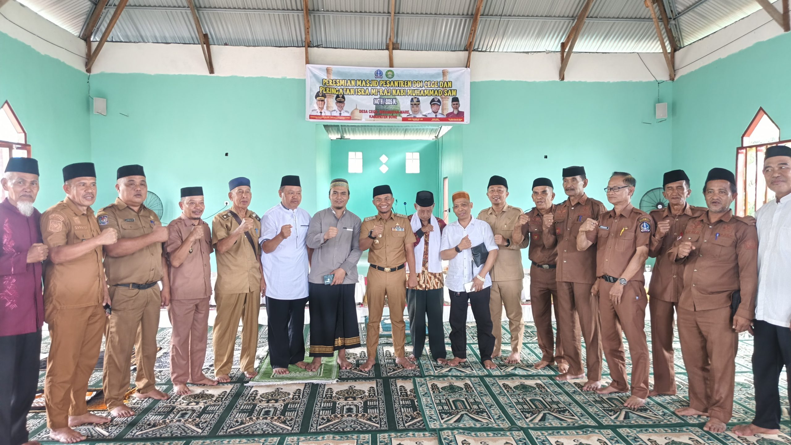 BONE,TRENDSULSEL–Bupati Bone H. Andi Asman Sulaiman, S.Sos., M.M., meresmikan Masjid Al’ Wasilah Pesantren DDI Cege sekaligus menghadiri peringatan Isra Mi’raj Nabi Muhammad SAW di Desa Cege, Kecamatan Mare, Selasa (27/1/2026).