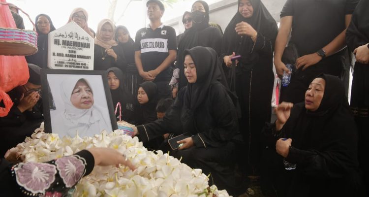SIDENRENGRAPPANG,TRENDSULSEL–Suasana haru menyelimuti prosesi pemakaman ibunda Wakil Gubernur Sulawesi Selatan, Fatmawati Rusdi,